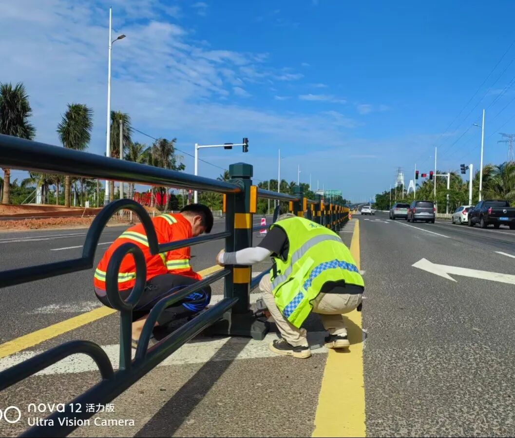交安设施“换新颜”。开展交安设施“焕新提质”专项行动。对全线护栏进行刚度校准和完整性修复,对锈蚀螺栓、损坏构件一律更换;采用高效清洁技术,让标志牌保持醒目清晰;运用新型反光标线材料,重划磨损标线,确保夜间及不良天气下的视认性;对景观绿化进行修剪补植,提升路域整体环境,致力打造“安全、舒适、美观”的行车环境。